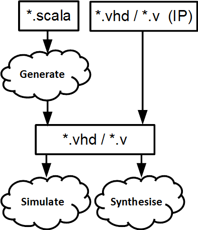 SpinalHDL is fully interoperable with standard VHDL/Verilog-based EDA tools (simulators and synthesizers) as the output generated by the toolchain can be VHDL or Verilog.